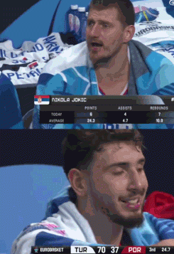 直播吧9月3日讯 欧锦赛期间申京和约基奇两人都曾在场边随着音乐跳舞。